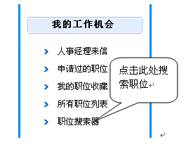 2) 進入"個人管理中心",位于左側子欄目的"我的工作機會",點擊"職位搜索器"如下圖所示: